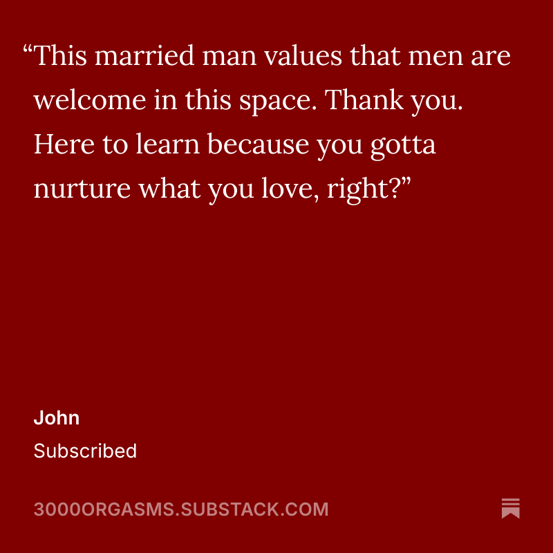 Welcome to 3000 Orgasms - the newsletter for people craving an expansive, empowered reality for their sex lives. This is a space where pleasure and self-discovery are at the heart of every story, and where NSFW conversations are embraced, not avoided.